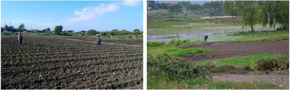It is possible to see family-based local scale agricultural practices in these spaces, which stamp a singular character and identity, where the agricultural spaces and the means of occupying and living in them become important, as well as the models of economic exchange, social organization and appropriation of the land which show socioenvironmental values that are being rigorously analyzed. In the local context, these areas are greatly strained, on one hand by pressures to change agricultural uses to urban uses, and on the other, by the lack of specific policies which make these areas visible. This has led to the marginalization of these spaces and their precariousness, jeopardizing them, contributing towards strengthening conflicts which end up weakening the family-based collaborative agriculture they provide (Curzio de la Concha, 2008; Galindo & Giocoli, 2013; Segrelles, 2015).