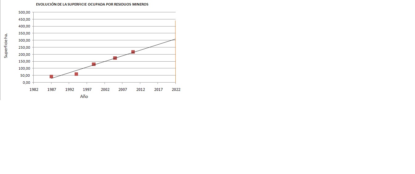 En la Tabla 1 también se puede observar una producción creciente de cales, lo que se debería ver reflejado en un crecimiento constante de la mancha de los residuos mineros.