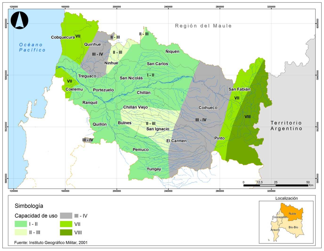 - ¿Qué características tienen los suelos en la región de Ñuble? Relacione el mapa de capacidades de uso de suelo, pendiente y erosión.