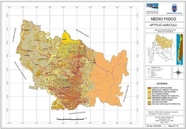- De una opinión sobre el uso de los suelos en la región de Ñuble está siendo adecuado su uso a partir de los que usted puede observar en los mapas de capacidades de uso de suelos, erosión y de las distintas actividades económicas (agrícola, frutícola y forestal) que se desarrollan en estos.