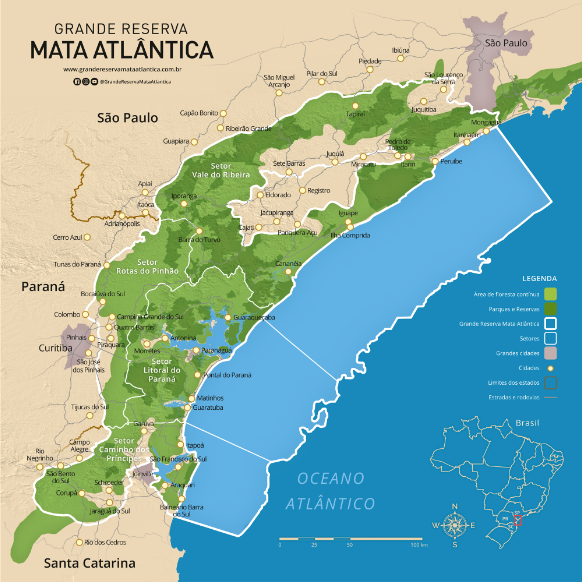 Diante da sua biodiversidade e riscos eminentes, a Mata Atlântica está entre as 25 áreas mundiais de maior interesse em termos de conservação (Cardoso, 2016). De acordo com Sutil, Ladwig & Silva (2021) uma das iniciativas que podem ajudar em sua conservação é a Grande Reserva da Mata Atlântica (GRMA). A reserva abrange 50 municípios, 3 estados brasileiros (São Paulo, Paraná e Santa Catarina) e abarca o maior fragmento contínuo da Mata Atlântica, correspondendo a 10% da área remanescente.